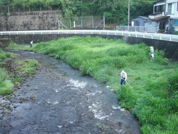 - 岩科地区では、早朝から各区で岩科川の清掃しました。