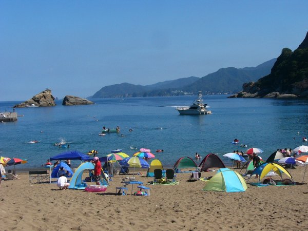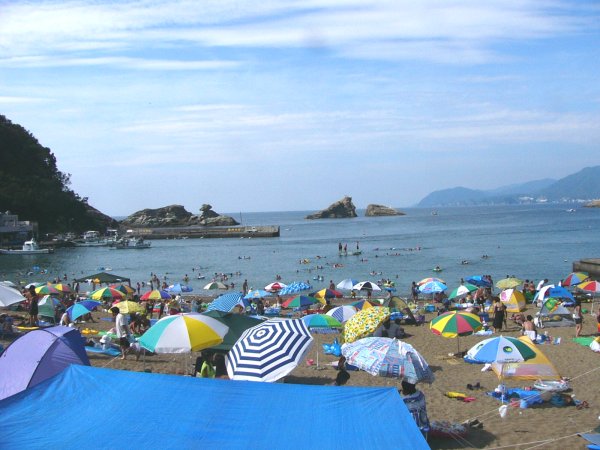 - 今日の雲見海岸の様子です。たくさんの海水浴客で賑わっていました。 画像をクリックすると松崎海岸の様子がご覧になれます。