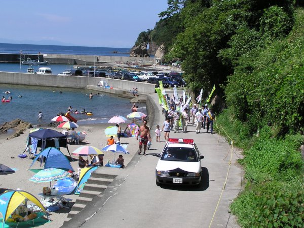 - 三浦地区(岩地・石部・雲見)海水浴場では、海水浴場と地域の安全を確保するため、暴力追放パレードを行いました。