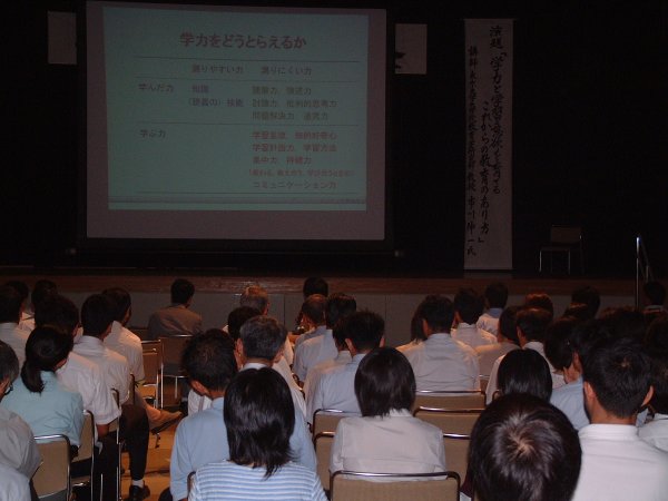 - 文化ホールでは、東大大学院教授市川氏を招き西豆教育研究会が開かれました。