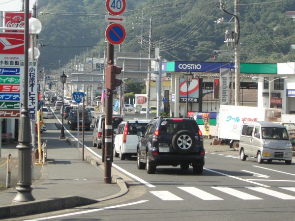 - バイパス(国道136号)では、夕方近くから車の量も増えてきました。