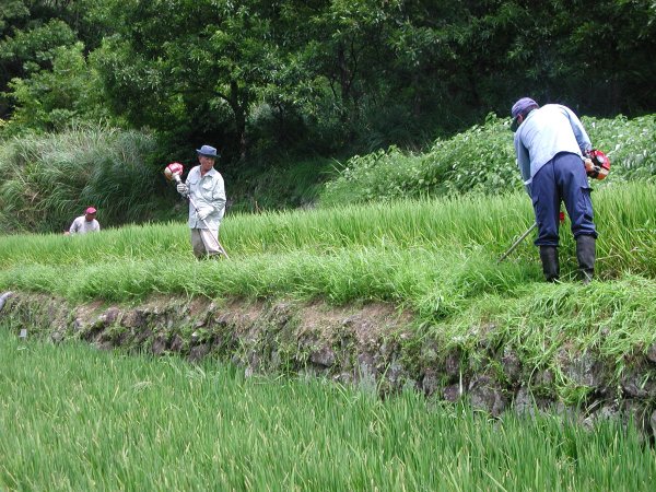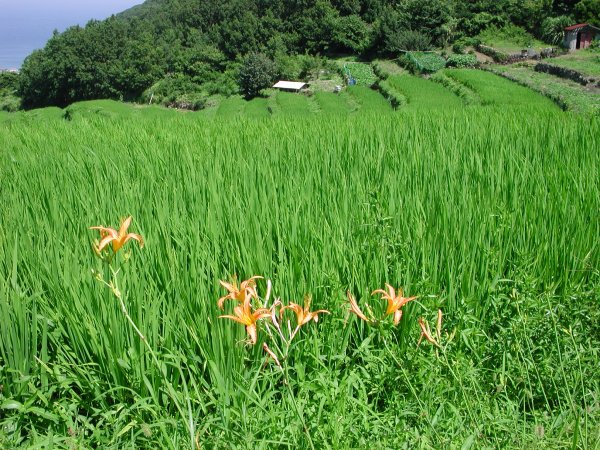 - 棚田にはノカンゾウも咲き、稲は稲穂をつけ始めています。