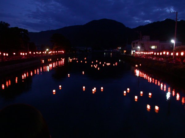 - ときわ橋周辺では、灯ろう流しが行われました。