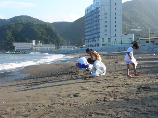 - 7月26日から毎日行なわれていた松崎中学生1年生の高木さんと福本さんの2名による松崎海岸清掃も本日で終了となりました。