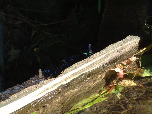 - イトトンボが田んぼせぎで涼しそうにしていました。