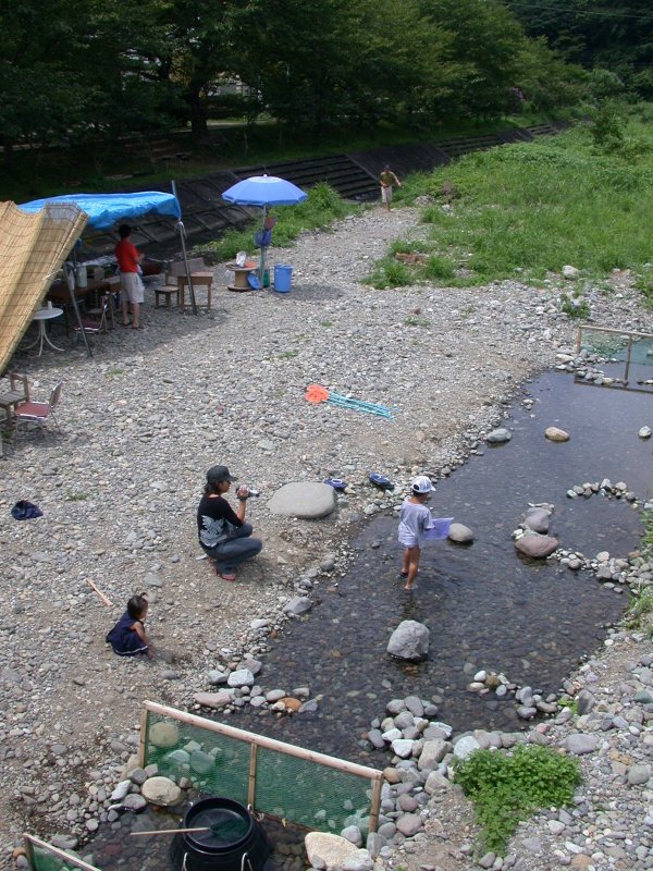 - 大沢にある、「道の駅」花の三聖苑裏手の那賀川では、鮎のつかみ取りが行われています。