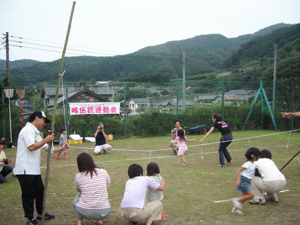 - 三世代交流事業で峰区運動会が行われ、子供から高齢者まで楽しんでいました。