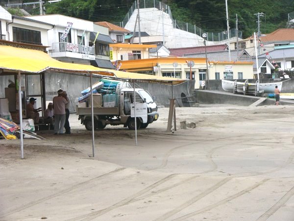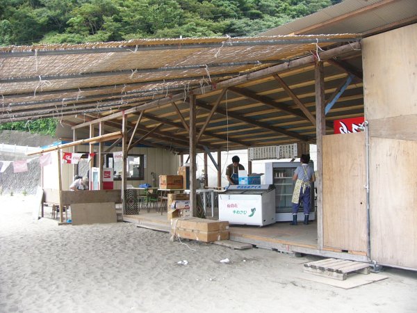 - 松崎町内の海水浴場で最も賑わった岩地海水浴場でも、海の家が解体されていました。