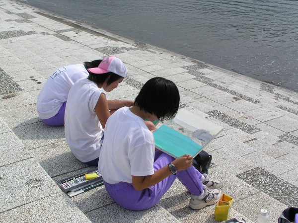 - 外部では、スケッチしている若者がいました。 町内には、絵になる場所がほかにもたくさんあります。