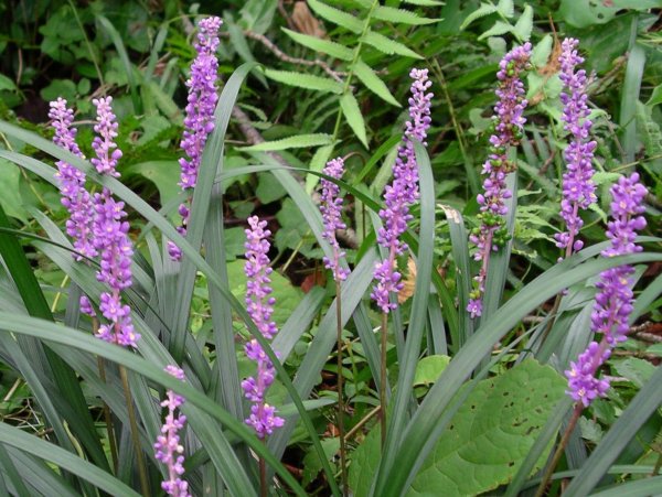 - 林の木の下には、淡紫色のヤブランが自生しきれいな花を咲かせています。