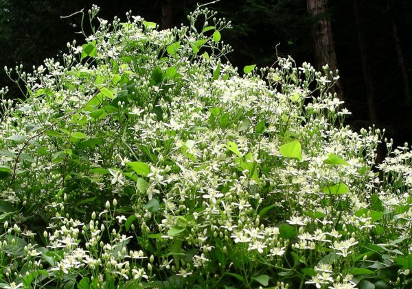 - 他の植物などにつるでからみつき繁殖するセンニンソウの花が咲いています。