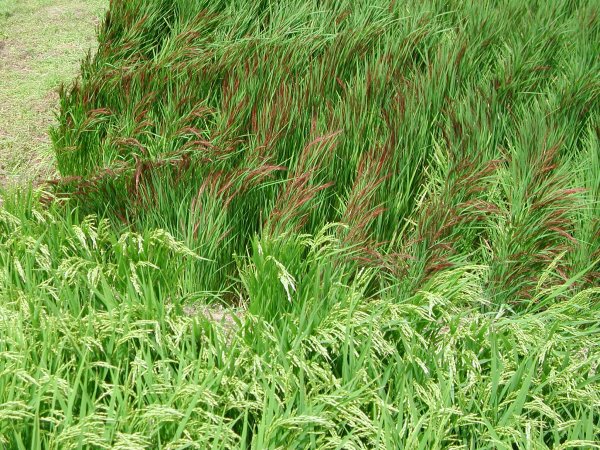 - 今日の棚田です。 石部棚田では赤米も稲穂をつけています。 台風の影響で稲も風で大きく揺れています。