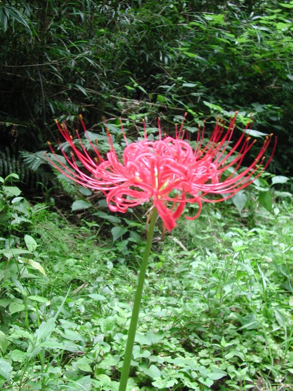 - 道ばたに目をやると、朱色のキツネノカミソリを見つけることができます。