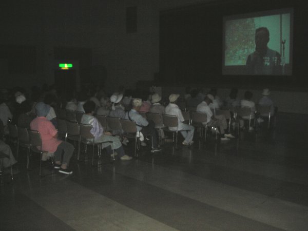 - 防災訓練の様子です。 環境センター文化ホールでは、松崎地区住民が集まり、ビデオによる防災研修を行いました。