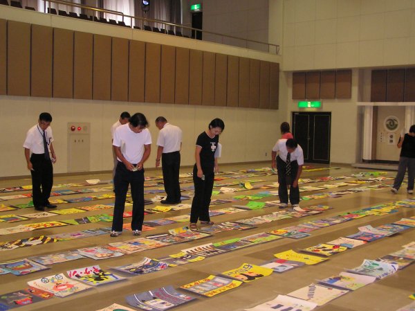 - 環境センター文化ホールで、交通安全の課題で町内小中学生が夏休み中に書いた、ポスターの審査が行われました。