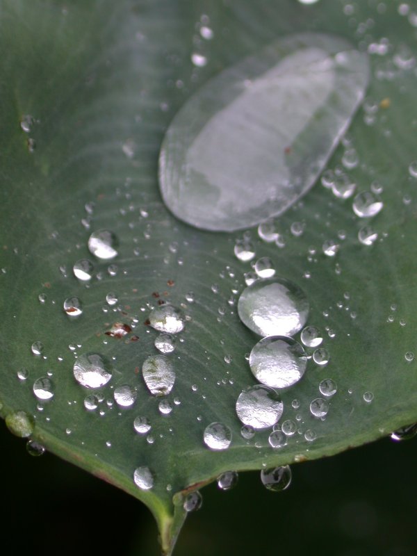 - 朝の雨で、畑の里芋の葉には、大きな水滴がついていました。 まさに「水玉」です。
