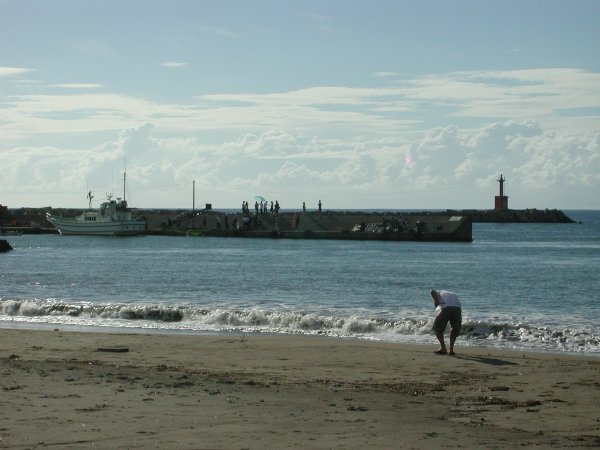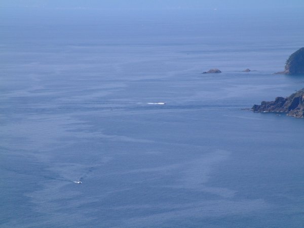 - 今日は秋晴れの爽やかな天気でした。沖合では数隻の船が漁にでかけていました。