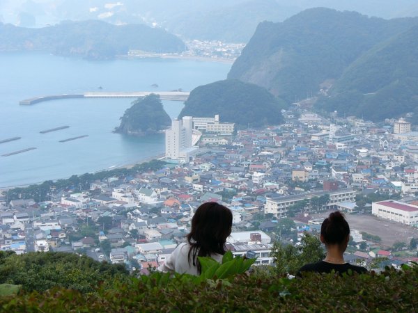 - 今日の松崎町は台風一過の晴天で、山の間からは富士山を見ることができました。しかし、海は波がまだ高く、濁っていました。