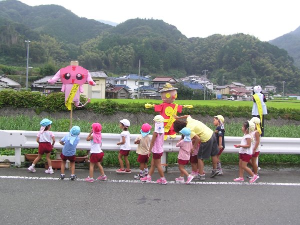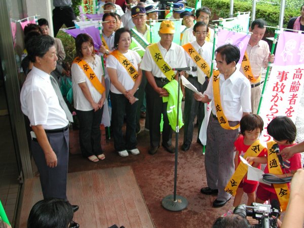 - 本日から30日までの10日間秋の全国交通安全運動が展開されます。早朝より、人力車と交通安全パレードを行い、高齢者と幼稚園児から町長へ交通安全宣言をしました。