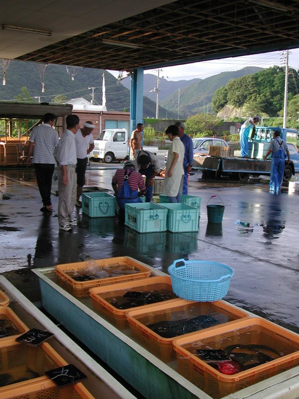 - 今朝の松崎港魚市場の様子。