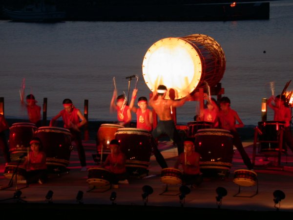 - 松崎海岸特設ステージを舞台に、伊豆半島太鼓フェスティバルが開催されました。 演奏開始時間は日没とも重なり、沈む夕陽は太鼓の雰囲気をより一層盛り上げました。