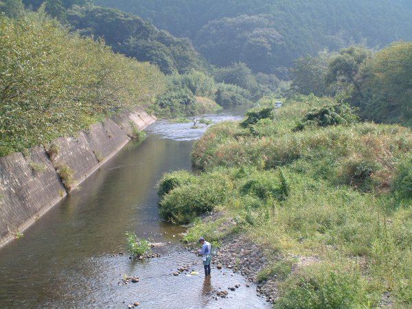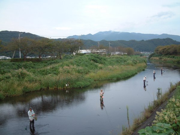 - 那賀川では、多くの人が鮎釣りをやっていました。