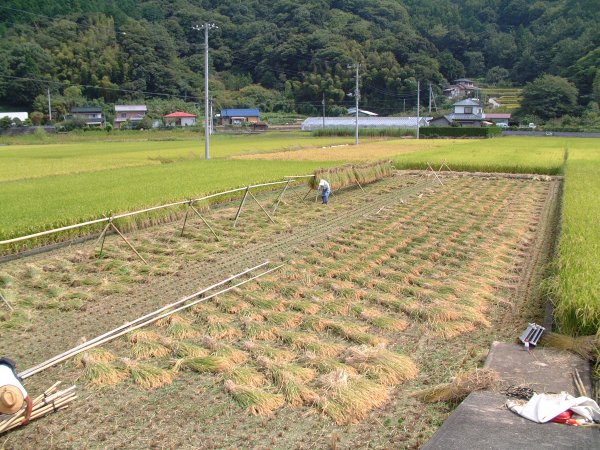 - 岩科地区の早いところでは稲刈りが始まっています。