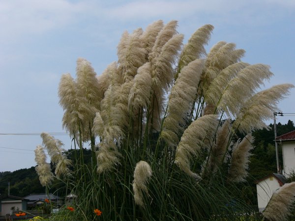 - 建久寺でパンパスグラスが秋のそよ風になびいていました。