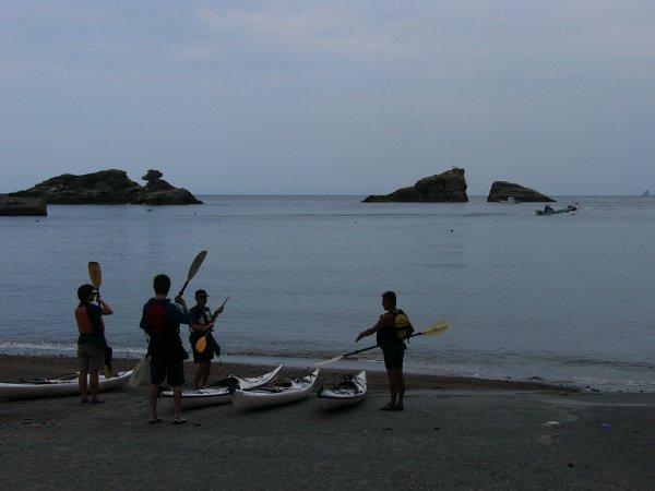 - 今日の海はとても穏やかでした。雲見海岸ではシーカヤック講習が行われていました。