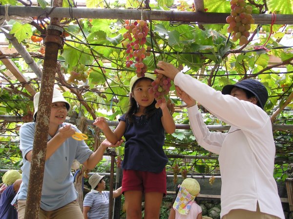 - 山本眞興さんのぶどう園で、岩科幼稚園児がぶどう狩りを楽しみました。