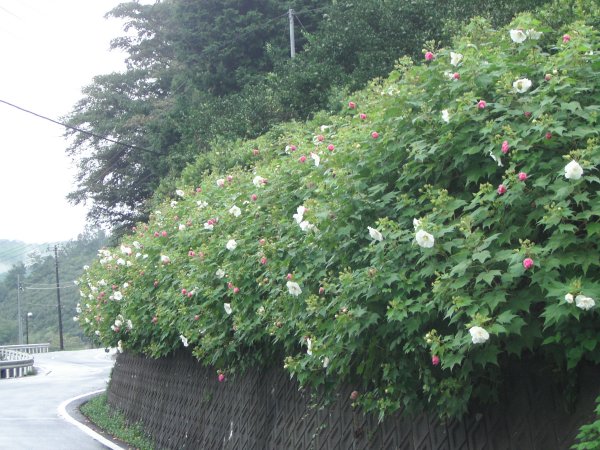 - 八木山の県道沿いではフヨウがたくさん咲いています。