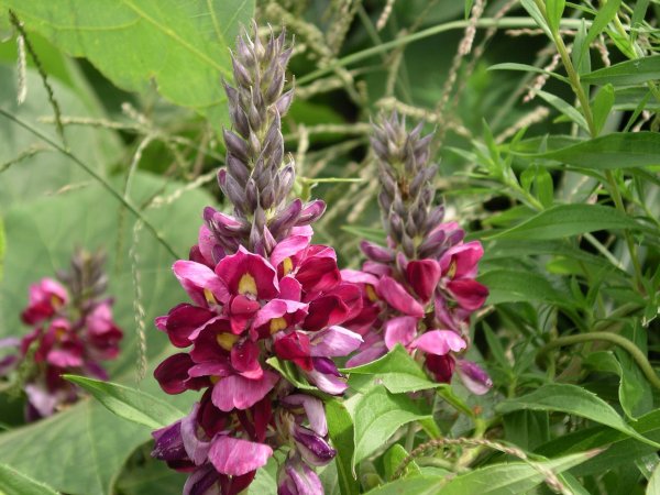 - 休耕地や河川敷などに秋の七草の1つ、クズの房状の美しい花が咲いています。