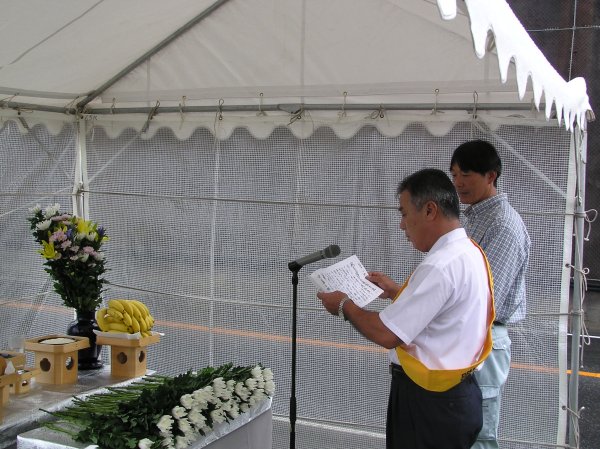 - 外部「安全運転誓いの塔」で過去幾多の交通犠牲者の方々の冥福を祈ると共に永遠の無事故を希求し交通安全を誓う大会が行われました。