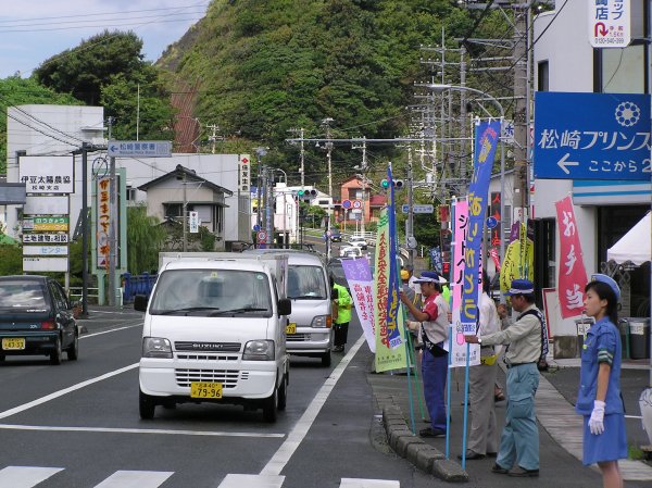 - 交通安全協会松崎地区と松崎地区安全運転管理協会により東海バス前交差点でキャンペーンを行い、運転手等に交通安全をよびかけました。