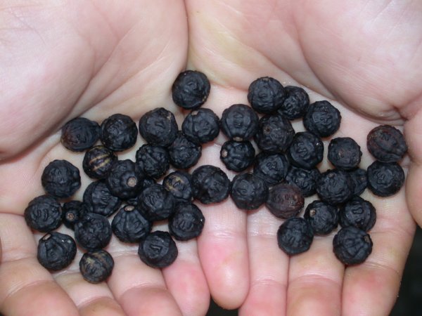 - おしろいばなの花が咲きたくさんの実が採れています。実の中の白いところを肌につけませんでしたか・・