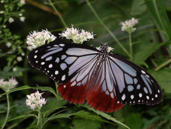 - 里山をフワリフワリ飛ぶアサギマダラ蝶がヒヨドリバナなどで吸蜜していました。