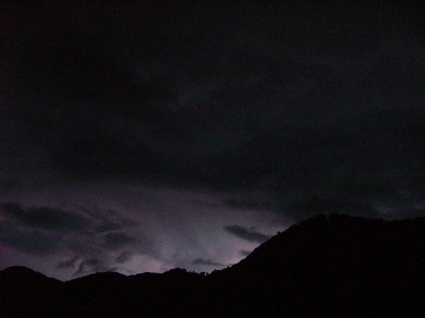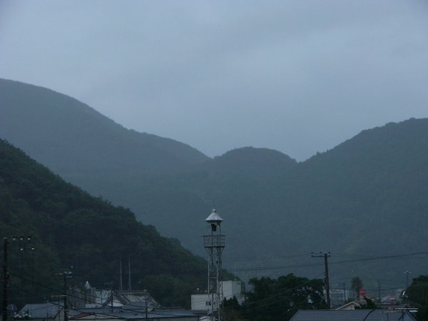 - 夕方より雷をともなって雨が降りはじめました。右に黒く写し出されているのは牛原山です。