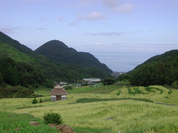 - 今日の松崎は、曇り空でした。石部の棚田は稲穂が垂れ収穫を待つばかりというような状況でした。