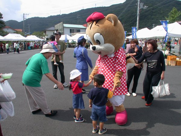 - 伊豆の長八美術館前では、長八まつりが開催されています。 各種サービスコーナーは大にぎわいです。 子どもたちは、交通安全コーナーのパトカーや白バイ、郵便局コーナーの着ぐるみに大喜びでした。