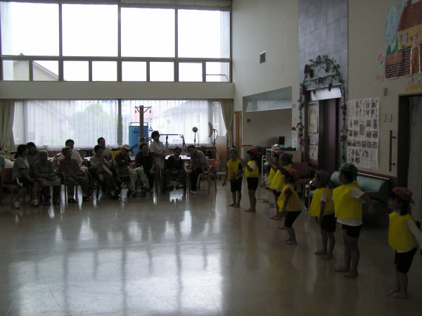 - デイサービスセンター松崎で中川幼稚園児が踊りの披露やゲームを一緒に行いました。