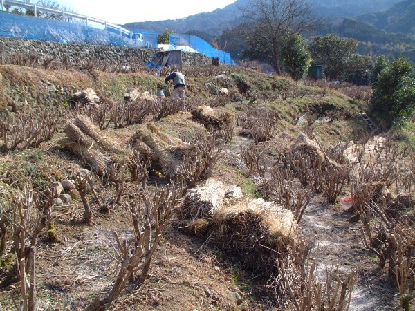 - 松崎町特産の桜葉を育てる為、肥料をまき、田んぼのわらをひく作業が、現在行なわれています。