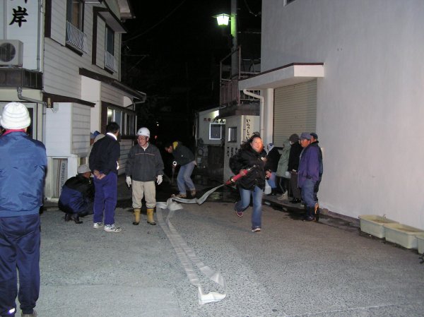 - 7日まで春の火災予防運動が行なわれています。住民による消火栓訓練が各所で毎晩行なわれています。