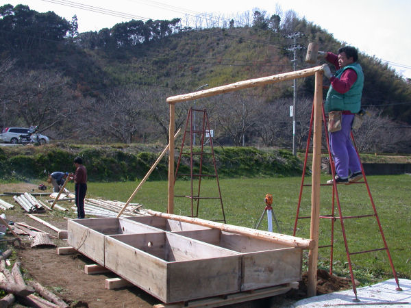 - 地域おこしの会では、今年も那賀大規模花畑(中耕地)の足湯設置作業を行っています。