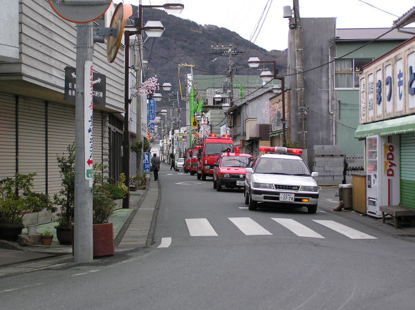 - 松崎町消防団では、春の火災予防運動の一環で町内パレードを行ない、火災のない住みよい町づくりを呼びかけました。