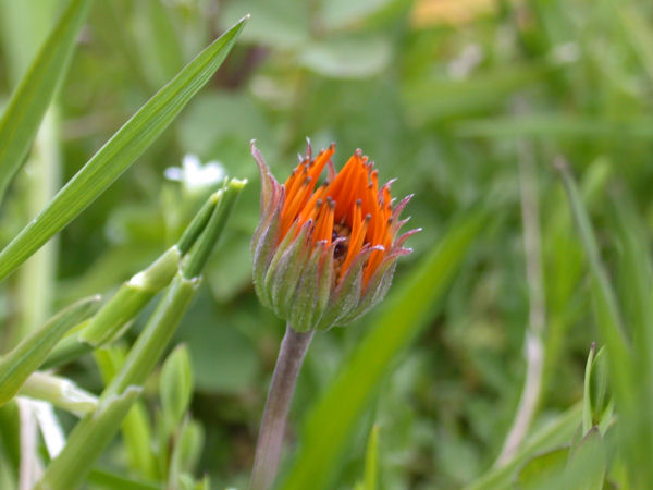 - 那賀花畑をじっくりさがしてみると、つぼみがふくらみ花の色の見えるものも見つけられるようになりました。