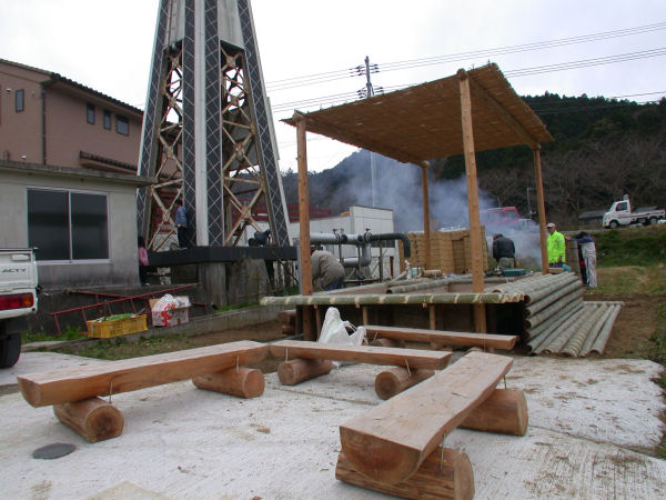 - 地域おこしの会では、昨日から設置作業が続いている花畑足湯が完成しました。 来週3月12日(土)からは、実際にお使いいただける予定です。