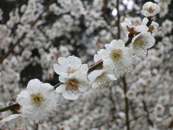 - 長九郎遊歩道入り口付近では、白い梅が満開となっていました。
