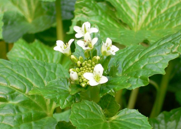 - 池代地区のわさび田では、わさびが花を付けていました。