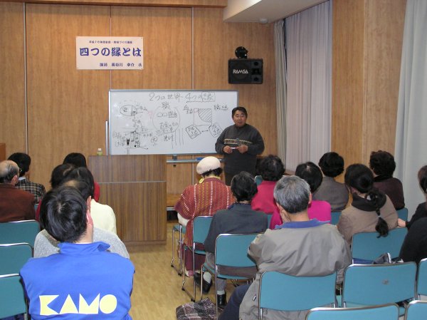 - 昨晩の話題ですが、茨城大学助教授長谷川幸介先生により「四つの縁」の演題で地域・家族・職場・友人や地域社会の大切さなどの講演が行なわれました。