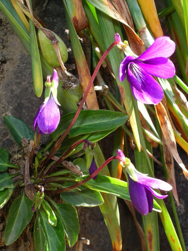 - 岩科では、畑の石垣に気品のあるスミレの花が咲いています。これから、土手や道端にたくさん咲きます。